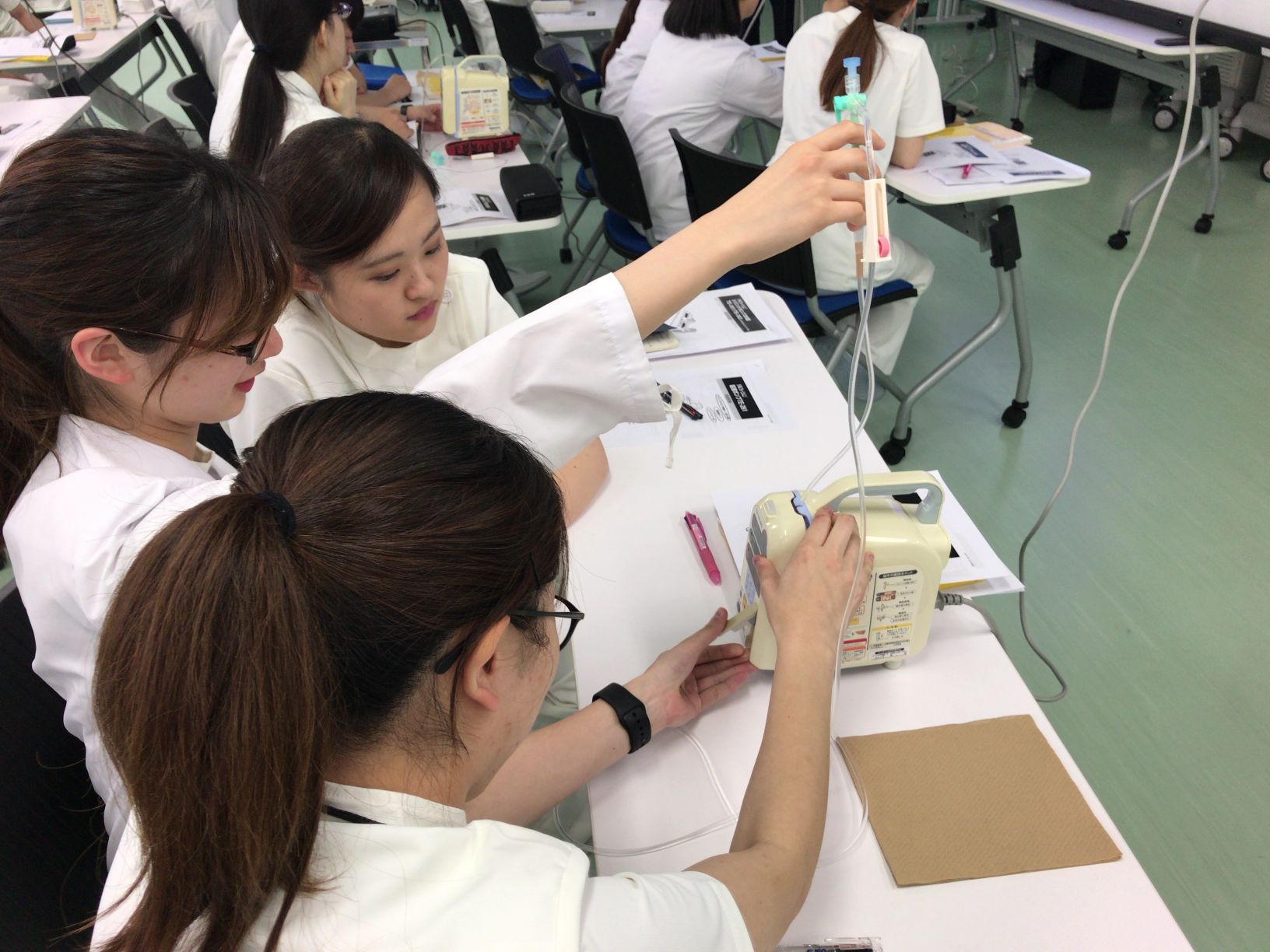 このように様々な治療で用いる医療機器の実習を行い、安全な医療提供ができるよう