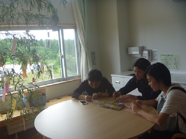 (南三陸病院の病棟で七夕の短冊作り)