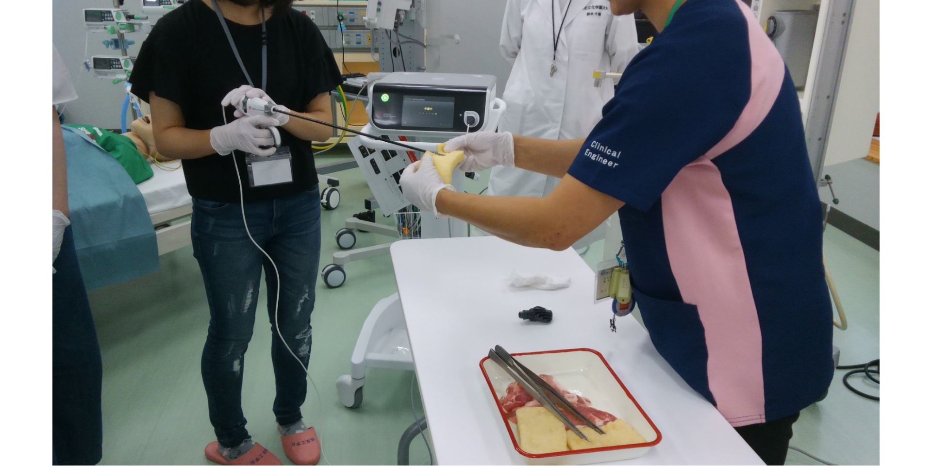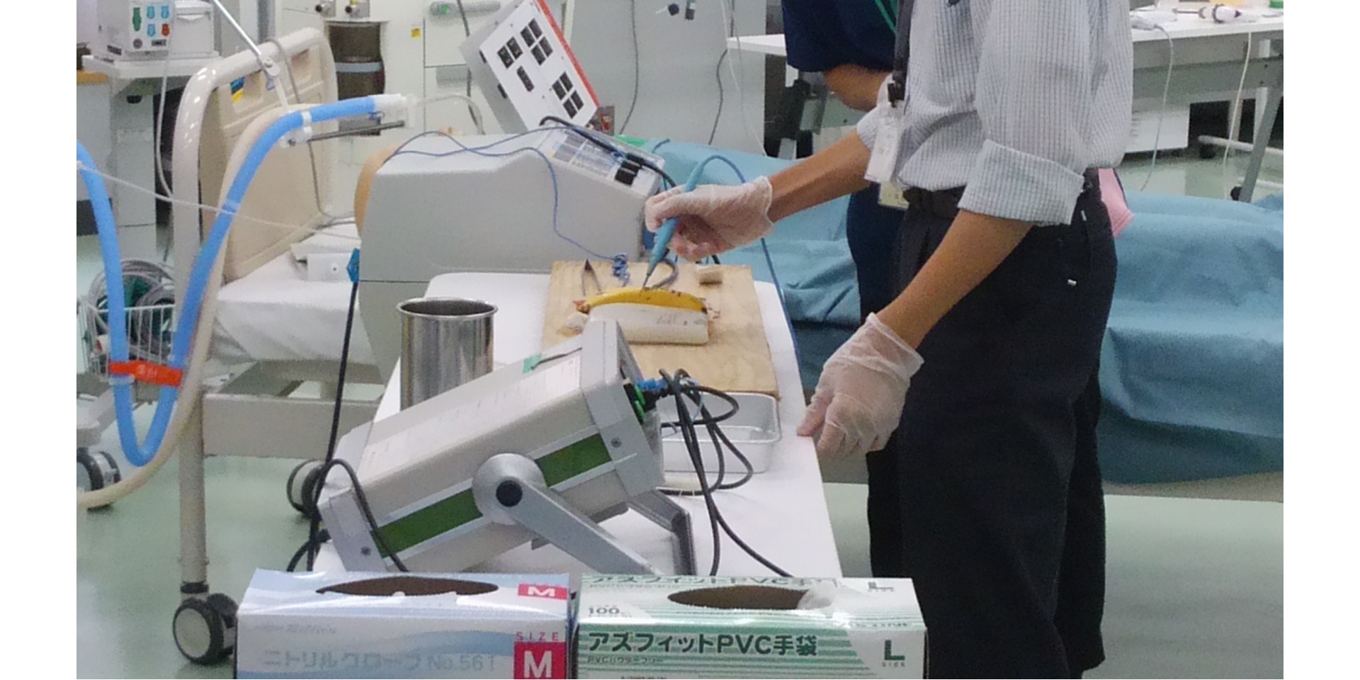 つい先日、実習室に新たに設置された「人工心肺装置」についても、皆さんに体験していただきました。