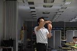 体験企画の1つは、いくつかの色のランプをつけて、青色が出たらスイッチ押してね!という企画を行い、ヒトが視覚刺激に対して反応する時間を競いました。