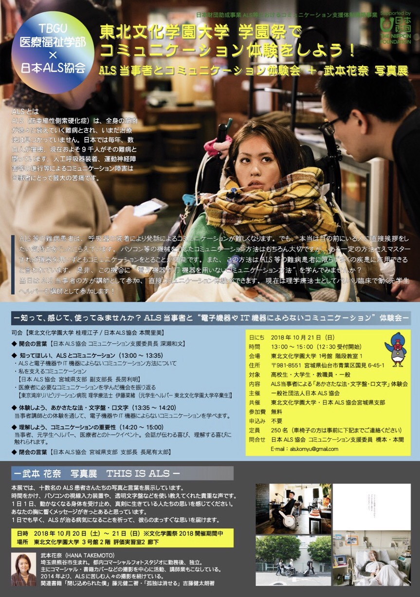 もうすぐ開催される学園祭において,ALS協会との共催企画を行います。