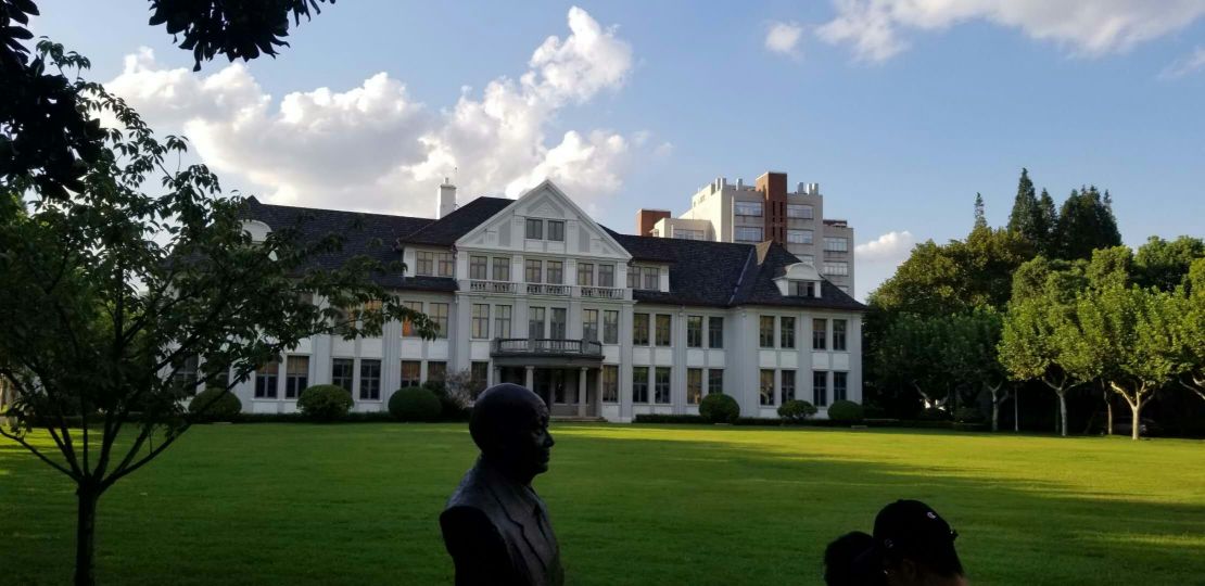 数学棟。手前は故蘇歩青学長(1977-83年)の銅像です。
