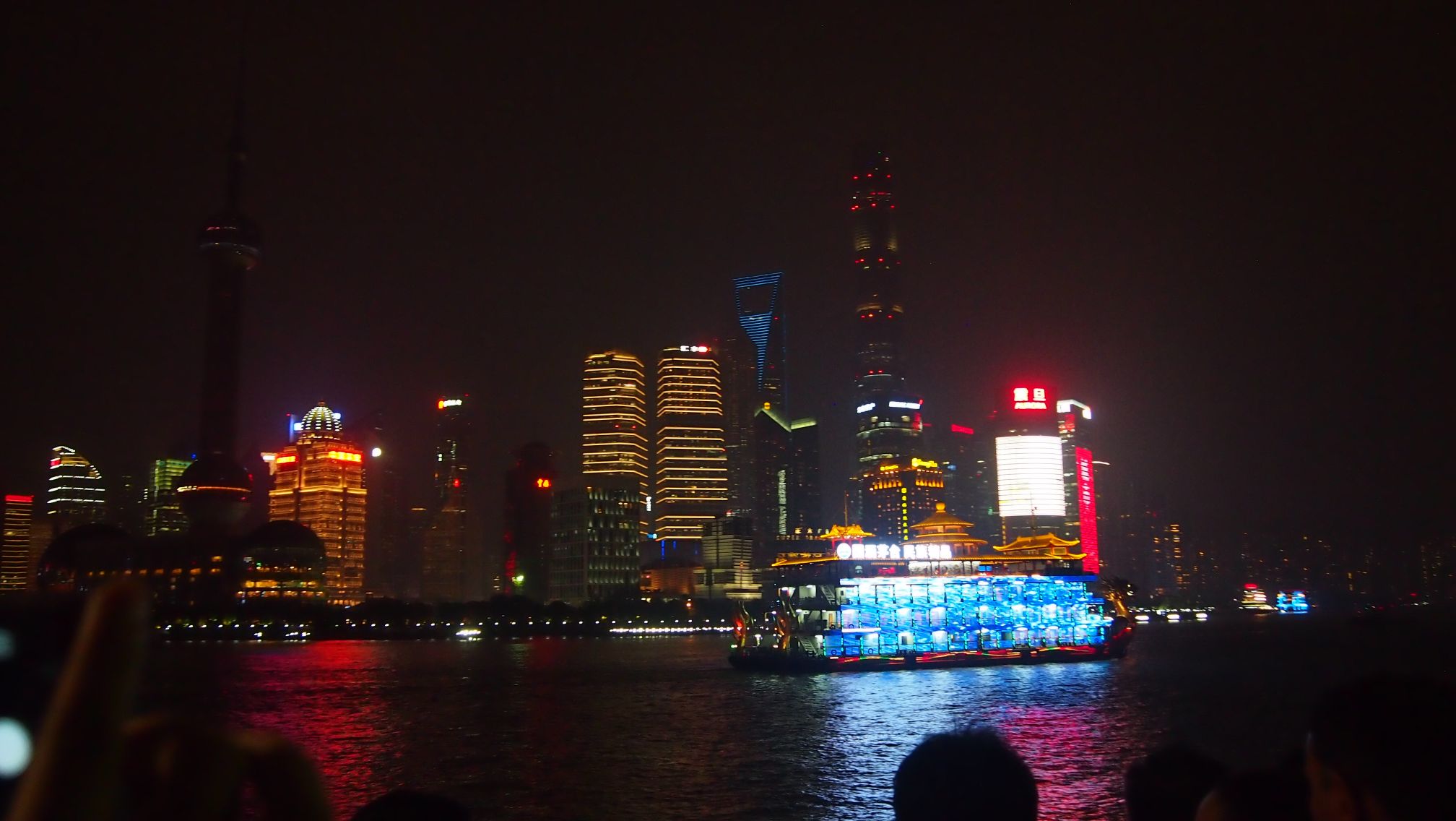 黄浦江には華麗なライトをつけた遊覧船が行き来し、素敵な夜景を見に大勢の人が出かけて夢中になって写真を撮ったりしていました。夜の街を見学した後、午後8時半にホテルに戻って来ました。