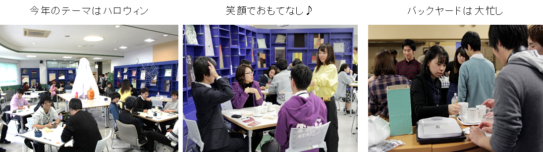 秡川、立花、増井の合同基礎ゼミナールでは、今年度も本学セブンイレブンおよび専門学校インテリア科と共同で、「カフェポレポレ」の企画、運営を3回行いました。