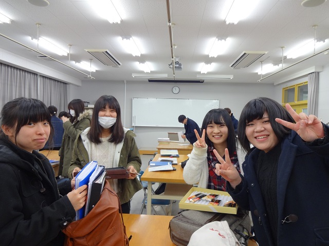 12月7日で臨床実習Ⅱが終了しました。実習期間中は、教員が実習施設を訪問し、学生と話をする機会がありましたが、大学に戻るのは10週間ぶりです。実習先の銘菓などを交換しあいながら、友人との再会を喜びあいました。