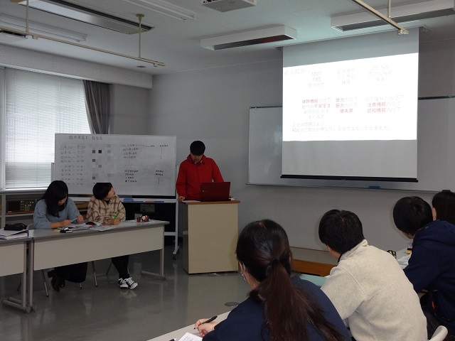 同じ疾患でも、症例によって症状や対応の仕方が異なるので、まずは同じ領域(身体障害・老年期・精神障害など)で実習した学生間で、体験したことを共有しあい、知識を確かめ合う話し合いが行われました。実習報告会では、異なった領域での経験も共有しあい、領域に共通して必要な知識や大切な理念について学びました。全過程を通して、積極的な討論が行われました。