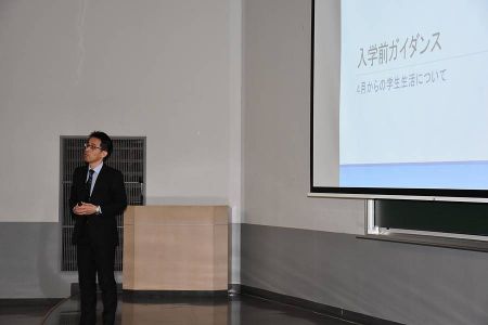 ガイダンスでは、入学者を対象として「入学後1か月の流れについて」や「理学療法士になるために必要なこと」などをテーマにした説明がありました。