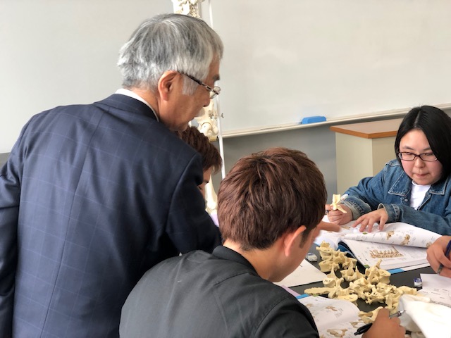 入学したばかりの1年生は解剖学の厚い教科書に驚きながらも、友人たちと相談したり、先生に質問したりして、意欲的に取り組んでいました。
