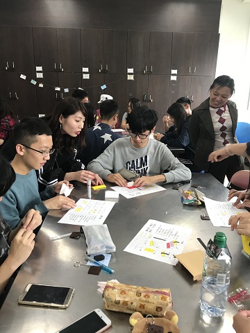 その後、本学4年生が台湾大学の学生に対して「折り紙で作る寿司」を伝授しました。