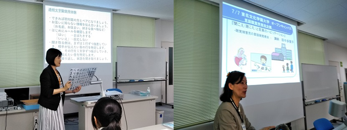 今回は、【まばたきだけでコミュニケーションをとってみよう】【聞こえと言葉のハビリテーション】というタイトルで模擬授業が行われました。