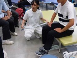 「学生企画」は、本学の大学院生と4年生による体験企画を実施しました。電気刺激や筋トレなどカラダをつかった体験を通じて、理学療法の面白さを感じていただけたら幸いです。また先輩と話をして大学生活のイメージも膨らんできましたでしょうか。