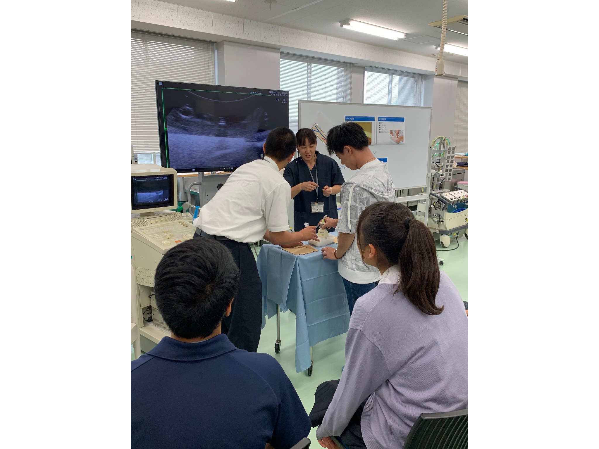 透析装置の操作体験            エコー下穿刺の体験