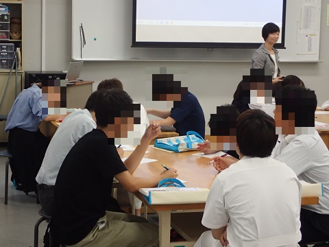 また、福島県の高校生がオープンキャンパスの見学でいらっしゃいました。短時間でしたが、リハビリテーションのこと、作業療法の仕事のことなどを説明しました。基礎作業療法実習室には手工芸の木工の作品、それらに使用する道具があります。「技術室みたい」との感想を言う方もいましたので、作業療法士は、身体能力に合わせて作業活動を選択していることも説明しました。