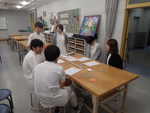 昨年からオープンキャンパスでは、司会やフリートーク、施設見学など在学生を中心に進行をしてもらっています。今回は、3年生2名、2年生4名に担当してもらいました。今回担当の2年生は初参加だったため、打ち合わせも入念に行いました。