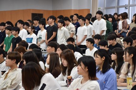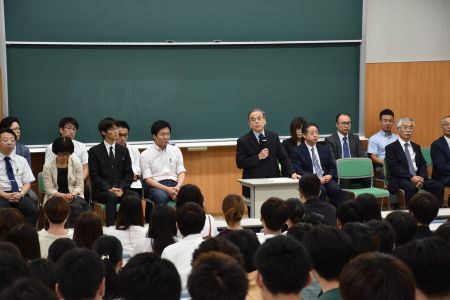 まず4学年が一同に集まり,学科長、副学科長より挨拶がありました。