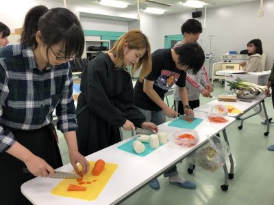 包丁の使い方が危なっかしい男子学生もチラホラ・・・。