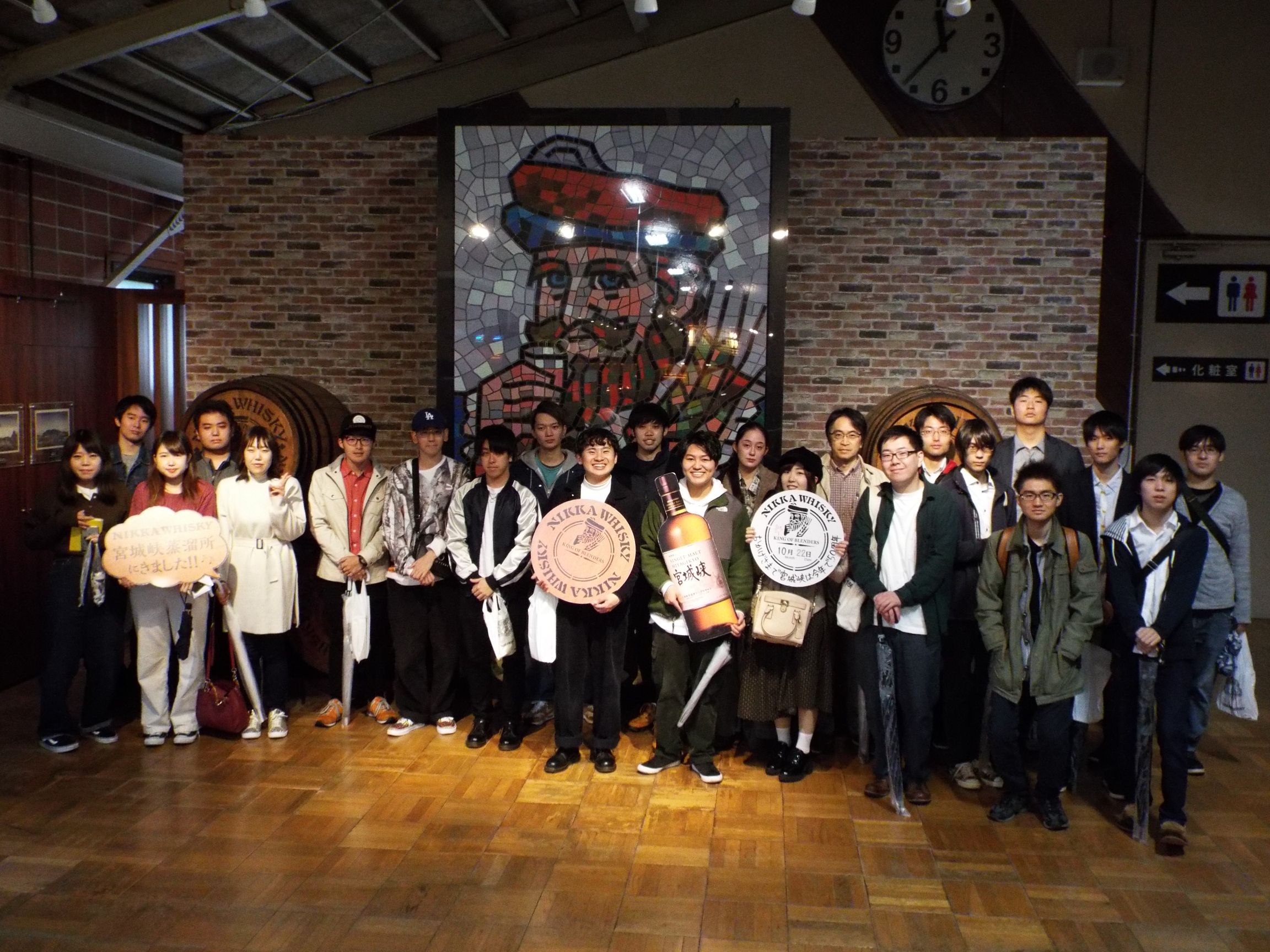 作並にて、ニッカウヰスキー仙台工場・宮城峡蒸溜所を見学し、貯蔵庫、醸造・蒸溜設備などについて蒸溜所に必要な設備の知識を深めることができました。
