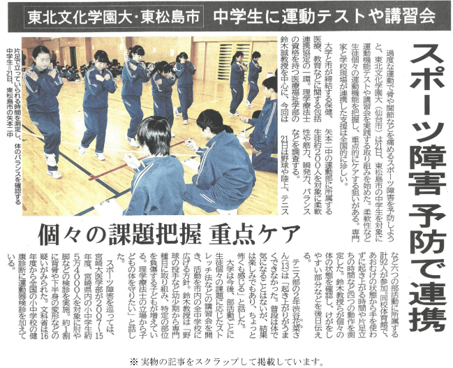 今回は、本学と包括連携に関する協定を結んでいる東松島市にある矢本第二中学校の運動部の生徒さんを対象に、運動機能測定を実施してきました。
