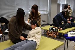 治療概念のみではなく、学生自身も治療技術を体験しながら学んでいます。