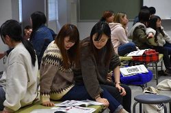 この写真は、科目担当者の講義場面と演習中の学生の様子です。みな真剣に取り組んでいます。