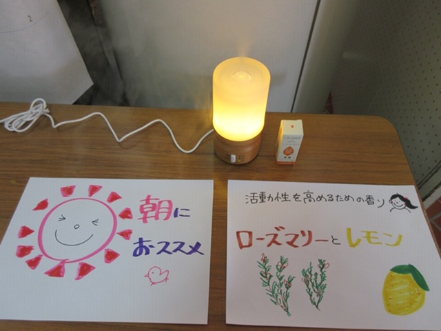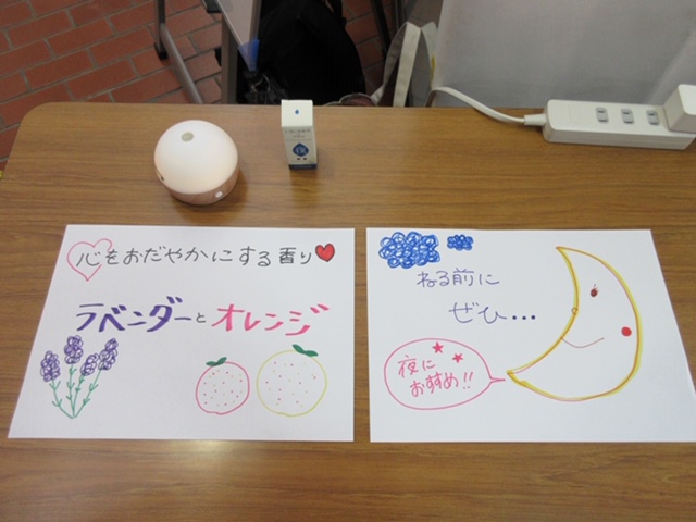 認知症に関わるパネルの展示とアロマの効果について紹介しました。