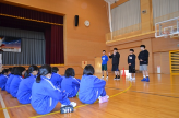 また、部活動の時間にはバスケットボール部に参加し、1対1や1対2、2対2といった練習の支援を行いました。日頃実現しにくい「大学生との対戦や技術アドバイス」も、生徒さんにとっては貴重な経験になったのではないでしょうか。