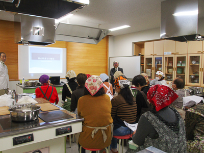 その事業は、「聞く・見る・体験する」の三要素から成り、まずコーディネーターの渡邊のお菓子とお茶のルーツと仙台の菓子事情についての講話と、次いで “奥州仙台銘菓支倉焼”の有限会社ふじや千舟の取締役副社長赤間博文氏と(有)大竹園の大竹英次氏より生業としての仙台のお菓子とお茶の事情について話を聞き、その後“元祖仙台駄菓子本舗”熊谷屋の熊谷典博氏の指導の下、参加者全員で実際に仙台駄菓子“志ほがま”を作る体験、最終回(2月27日)は仙台市茶室“六幽庵”で表千家同人会宮城県支部副支部��の畠山照子氏指導の下でお茶会体験をしながら、それまでの事業を振り返るものでした。