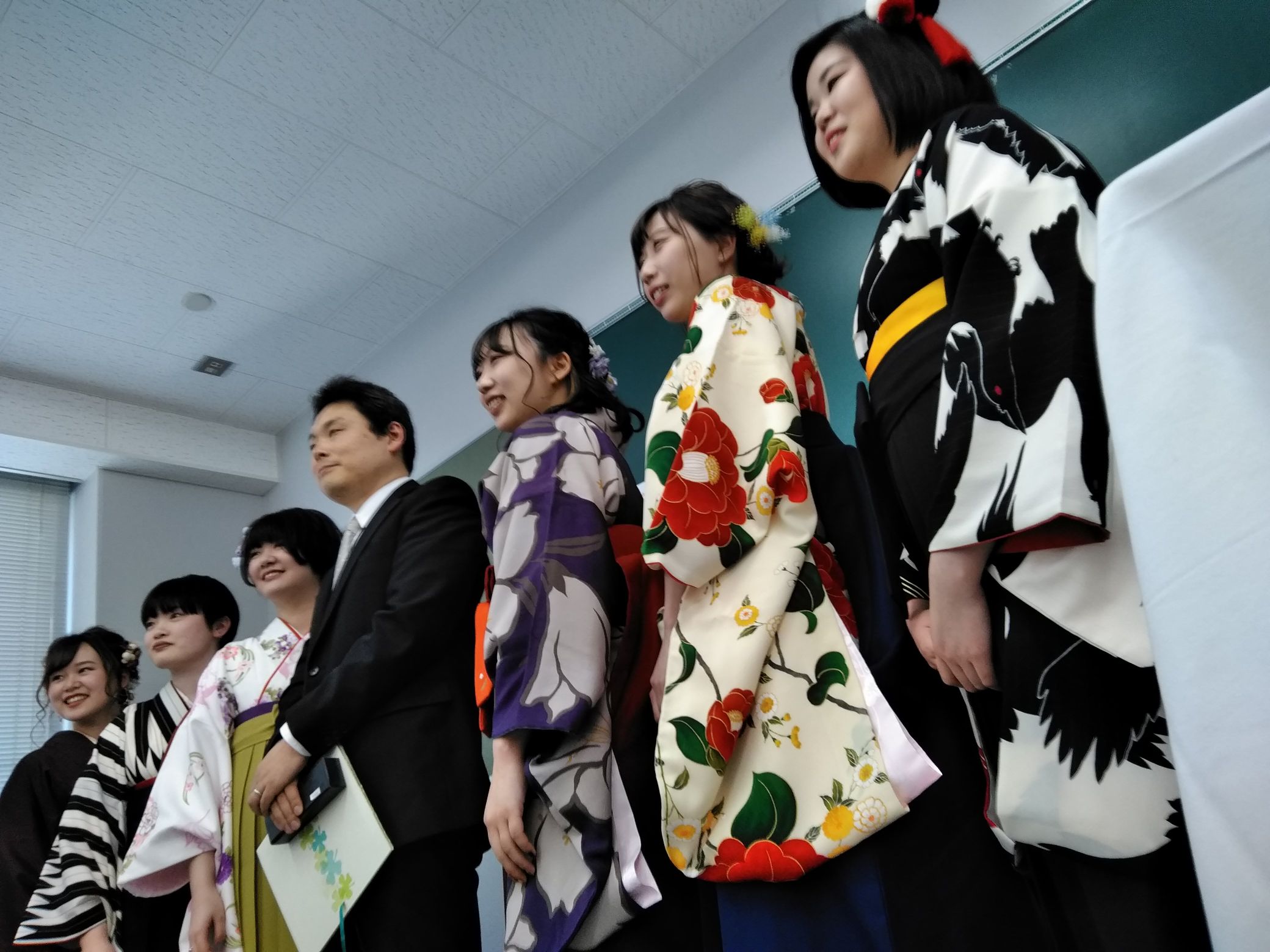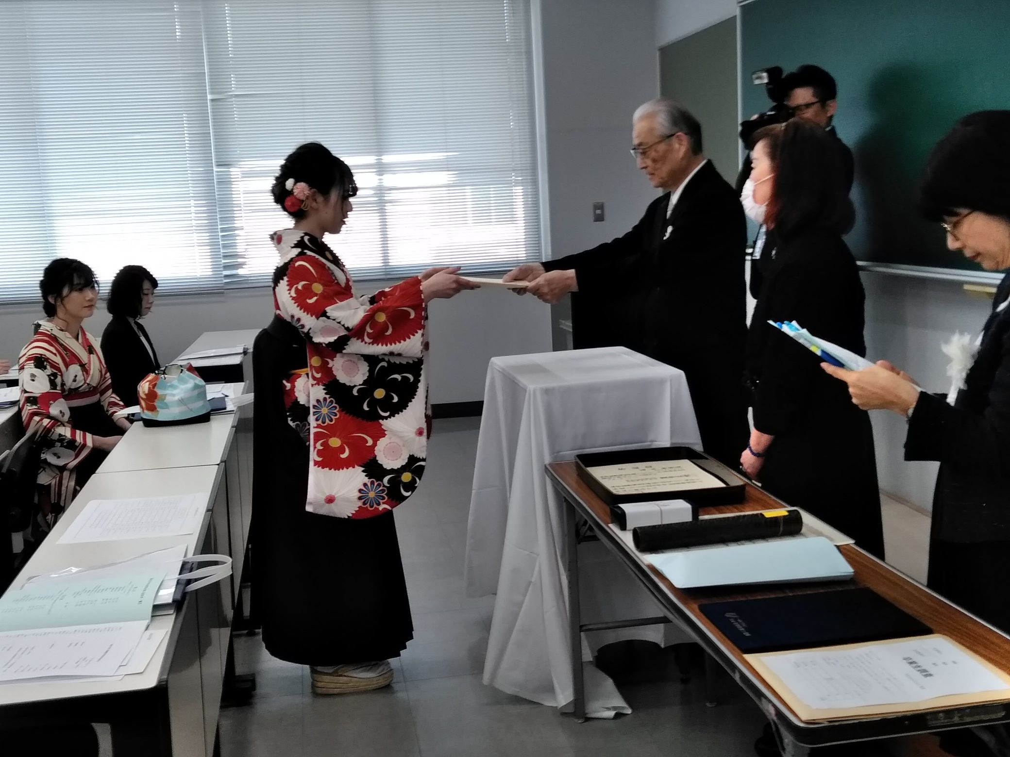 でも、大切な記念日です。学位記授与の瞬間です。皆さん、輝いてましたよ。振袖も素敵!