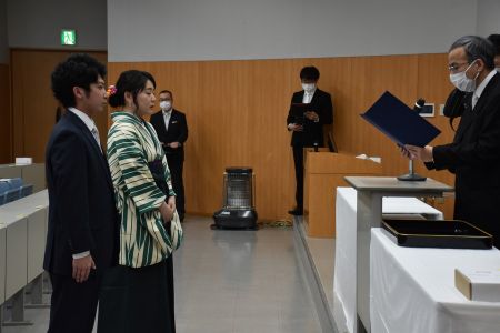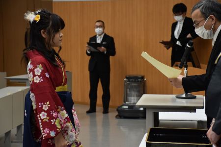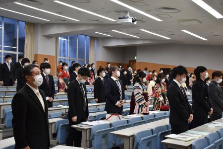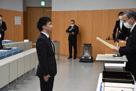 学生一人一人に学位が授与され,その後,各種の表彰を行いました。