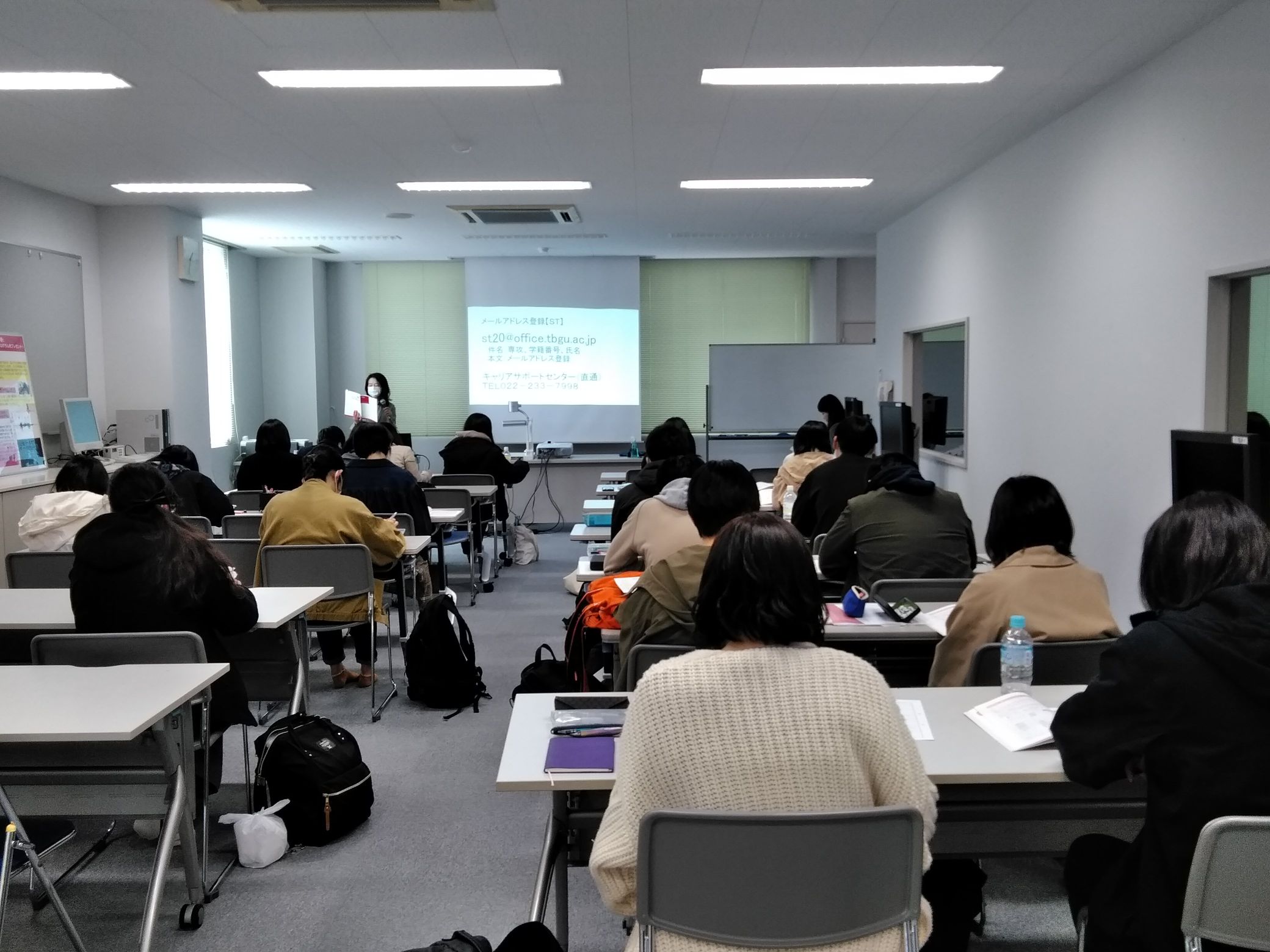 今日は本学のキャリアサポートセンターの方に来ていただき、ST就職スタートガイダンスが行われました。