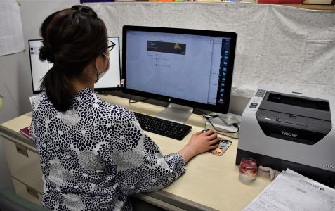 授業は大学へ登校してではなく、遠隔授業の形となり、パソコン上で学生とレポートや質問などのやり取りをしています。