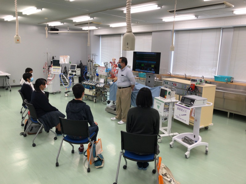 また、実物を見ながら臨床工学技士が操作・管理する医療機器の役割や重要性についても紹介しました。