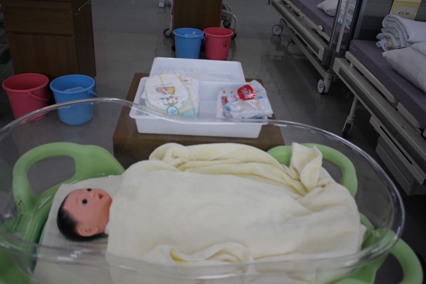 赤ちゃんや妊婦モデルを使っての看護の体験をしていただきました。