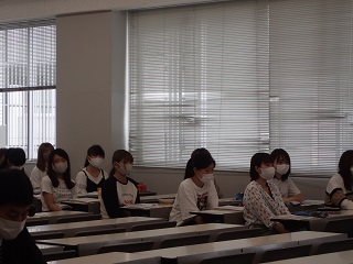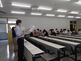 体温・体調を把握する健康管理シートを確認したのち、大学事務局からの配布物を確認し、後学期の開催にあたり、対面授業を受講するためのルールや手続等の確認を行いました。