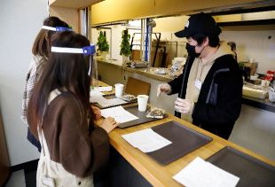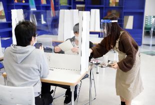 当日は、出入口でお客様一人一人に手指の消毒、検温を行い、入室・退室時間を刻印した用紙を渡して滞在時間を把握できるようにしました。また、飛沫感染防止策として各テーブルには卓上シールドを設置し、初のドリンクのテイクアウトも実施しました。