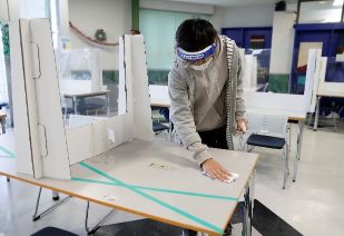 感染防止対策①:こまめな手指消毒 感染防止対策②:テーブル、椅子の清拭消毒