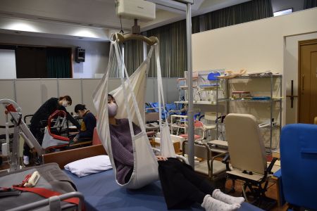 リフトの体験もしました。対象者の方に適切なリフトを選定したり、リフトを使用できるかどうかの身体機能があるかを評価したりすることは、理学療法士の大事な仕事のひとつです。