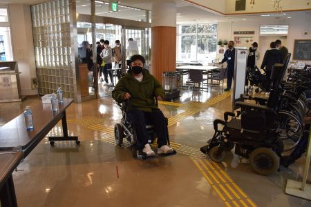 車いすの種類も多様にあり、乗り心地やスピードを体験していました。