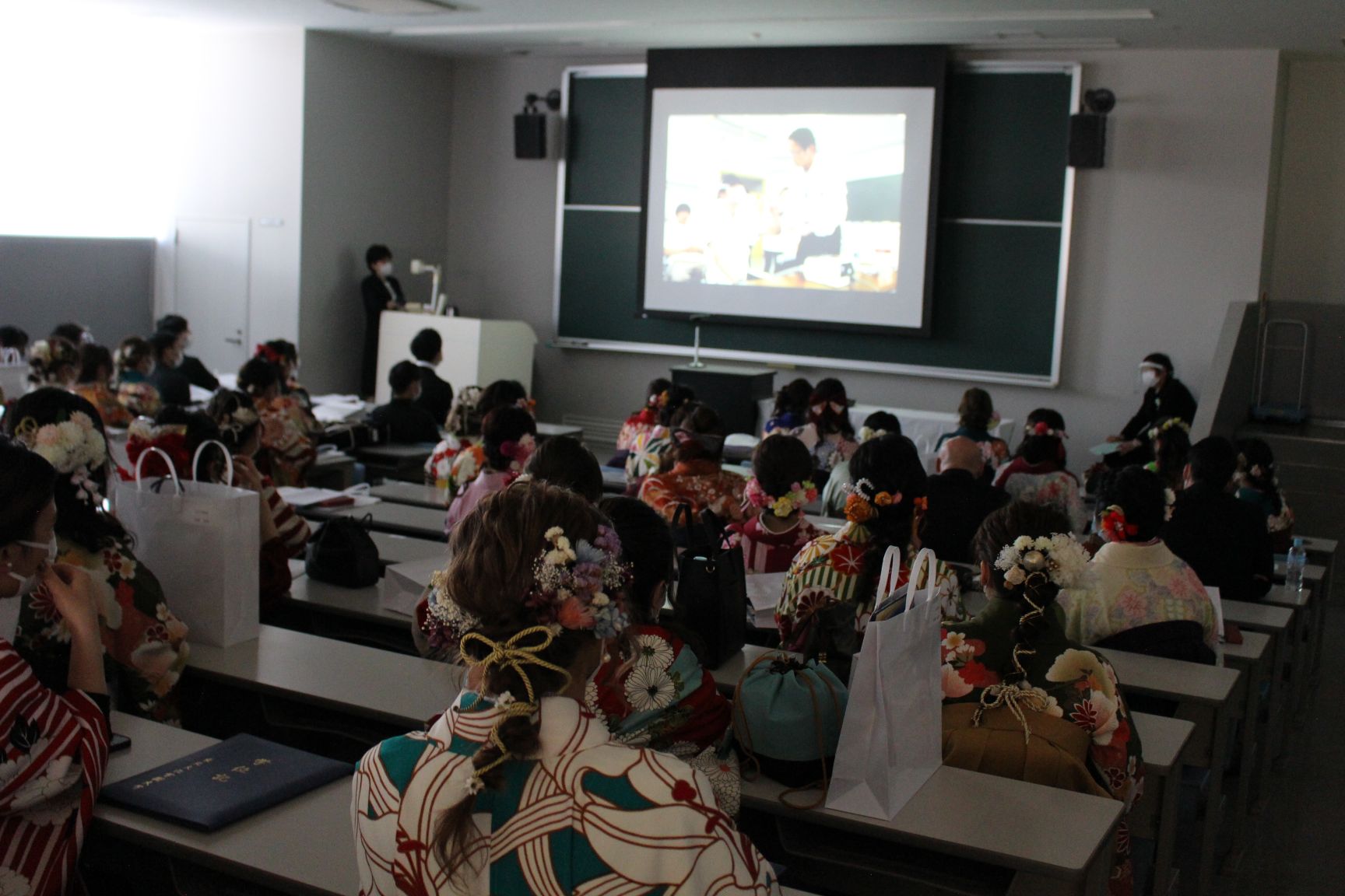 式の終了後には写真で学生生活を振り返りました。
