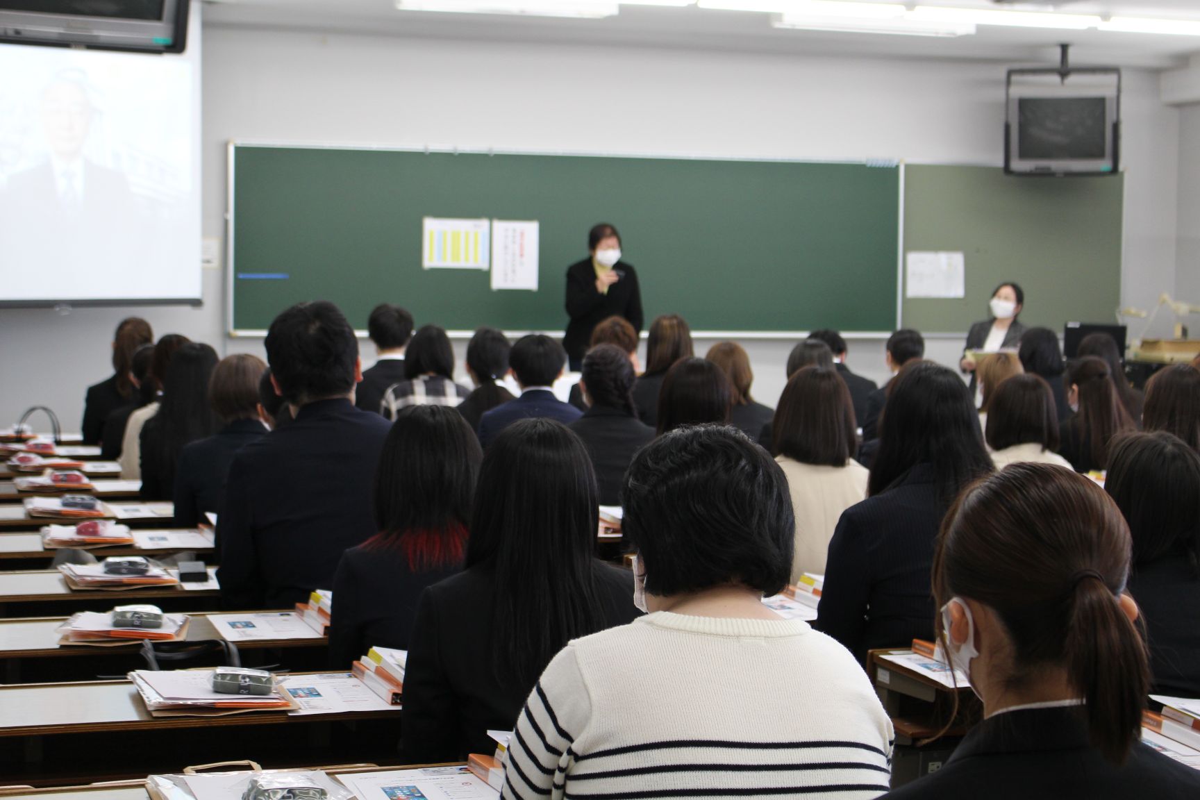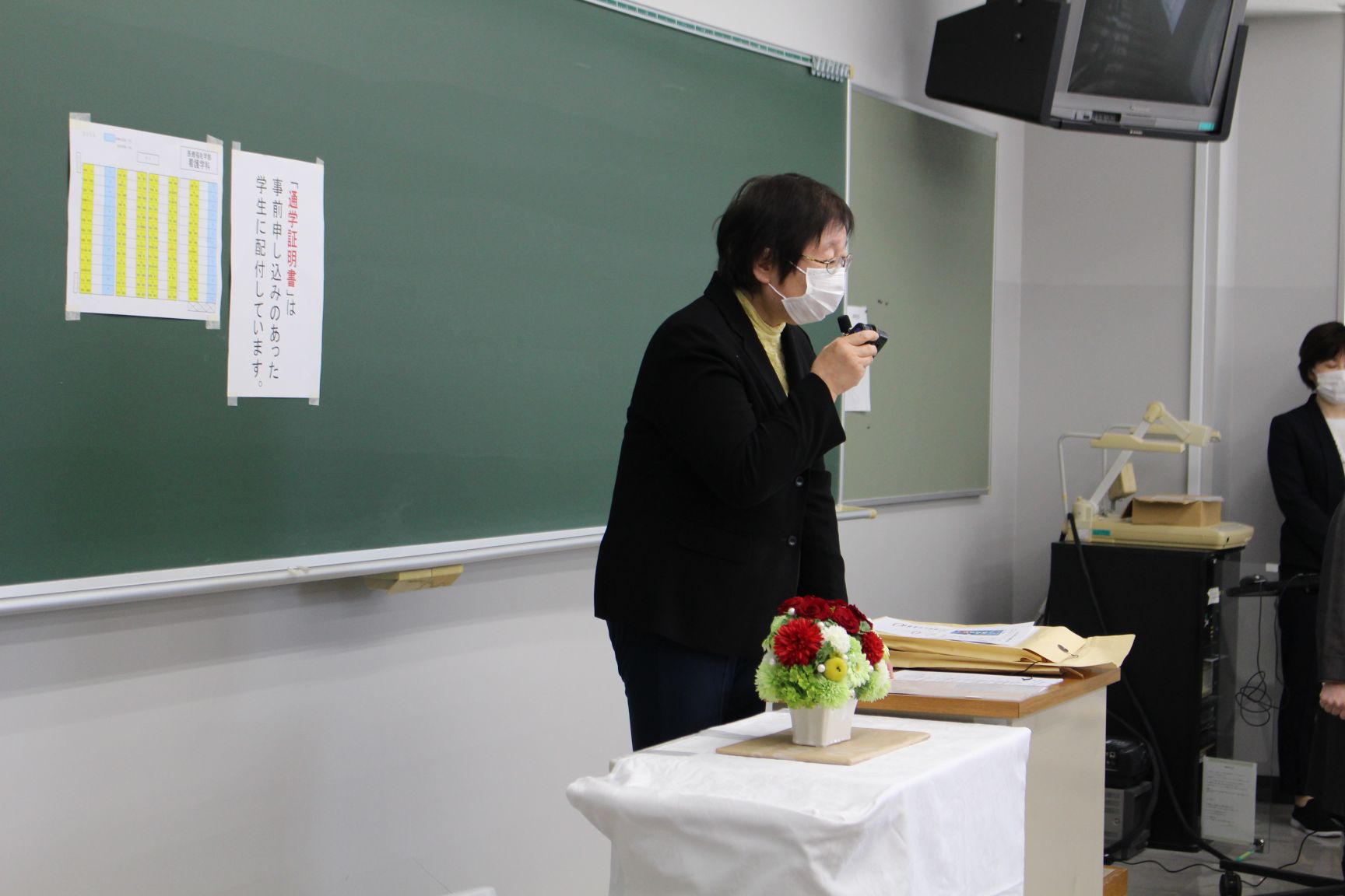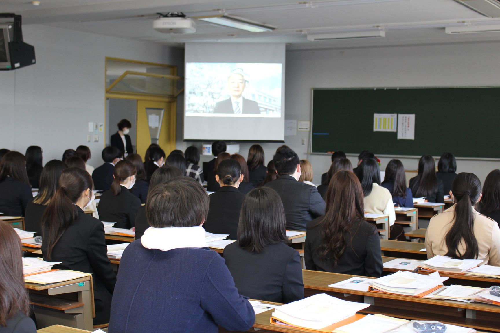 式では板垣学科長からの挨拶と、加賀谷学長からのビデオメッセージによる式辞をいただきました。