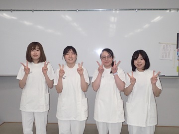 3年生4名に支援してもらいました。オープンキャンパスで司会、学生生活について紹介