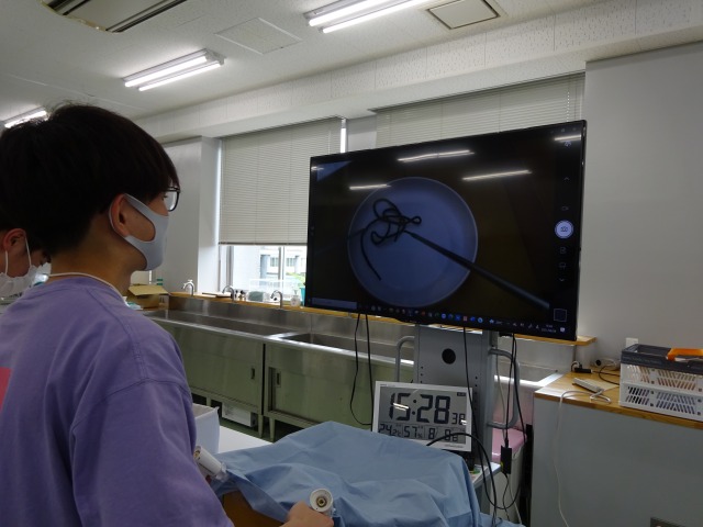 体験実習では、「透析回路」の組立や「内視鏡手術」の模擬体験を行いました。