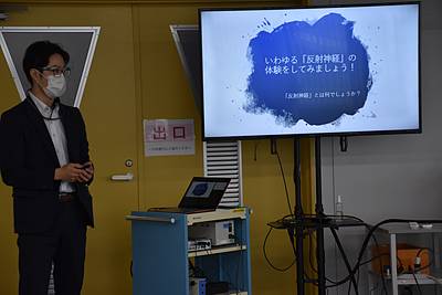 専攻説明に続き、沼田純希 助手による「反応時間に関わる神経系の働き」というテーマで模擬授業が行われました。
