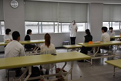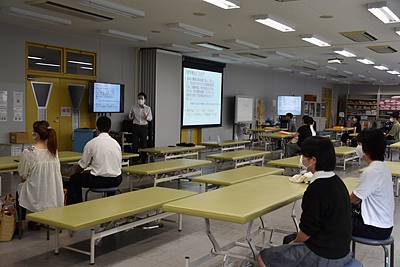参加者と学生の距離を確保して行い、講義や臨床実習のことなど、学生の目線から本専攻について紹介してくれました。