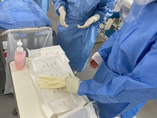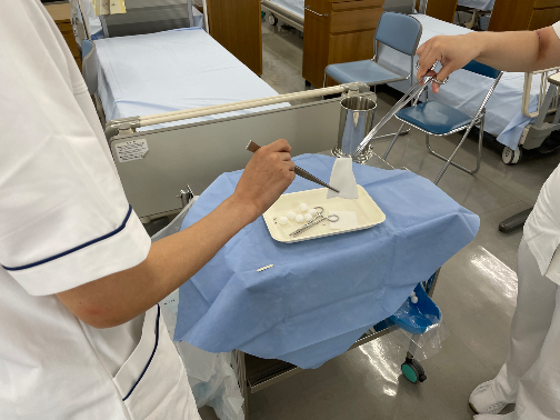 今回の演習では,感染対策として重要な「滅菌操作に関連する技術」を行いました.