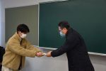 感染予防のため2会場に分けて実施し、学生たちへ「受験票」と「起き上がりだるま(松田工房)」を進呈するとともに激励のメッセージを送らせてもらいました。