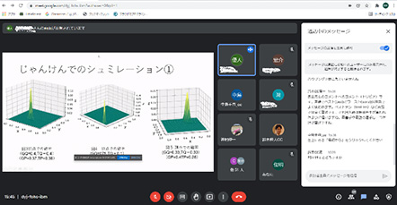 昨年度と同様、今年度も新型コロナの影響等を考慮して、4年生はそれぞれ自宅や各研究室に分散してオンライン形式で発表・質疑応答を行いました。大きなトラブルもなく無事発表会を終了することができました。