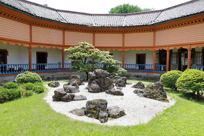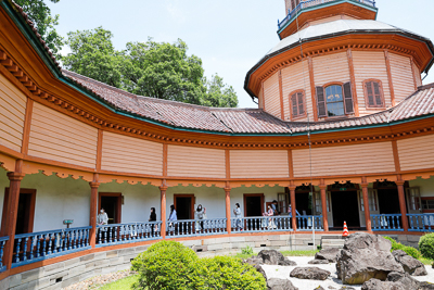 山形市郷土館は元々旧濟生館病院の本館として明治11年に旧山形県庁(文翔館)がある中心市街地に構築された擬洋風建築です。現在は霞城公園(旧山形城址)に移築されて、全国でも珍しい医療系の博物館となっています。同館は明治中期以降の度重なる火災等によって山形市の中心市街地が変貌していく中、唯一現存する明治初期構築の擬洋風建築の貴重な遺構ということで、昭和41年12月に国指定重要文化財の指定を受けました。しかし、当時は病院として使用されたことから建物には色々と手が加えられており、老朽化も進んでいました。そこで翌42年より足掛け4年の年月をかけて現在地に移築、保存修理が行われて創建当時の姿に戻り、昭和46年4月医療系博物館として生まれ変わりました。