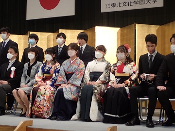 大学全体の学位記授与式は、隣の人との間隔をあけて行われました。