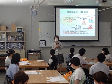 また、保護者の方とも個別にお話をさせていただきました。近年は働く場所も拡大しており、刑務所等の矯正施設での作業療法の実践が評価されていることを説明しました。作業療法士の仕事が幅広く、奥が深いとの感想を述べられていました。